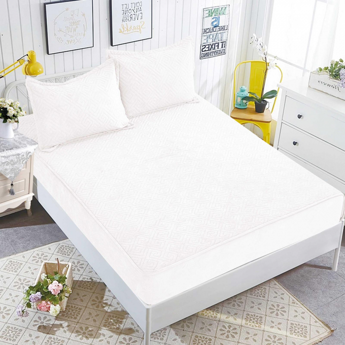 Husã matlasatã tip topper din catifea, 180x200cm + 2 fete de perna 50x70cm