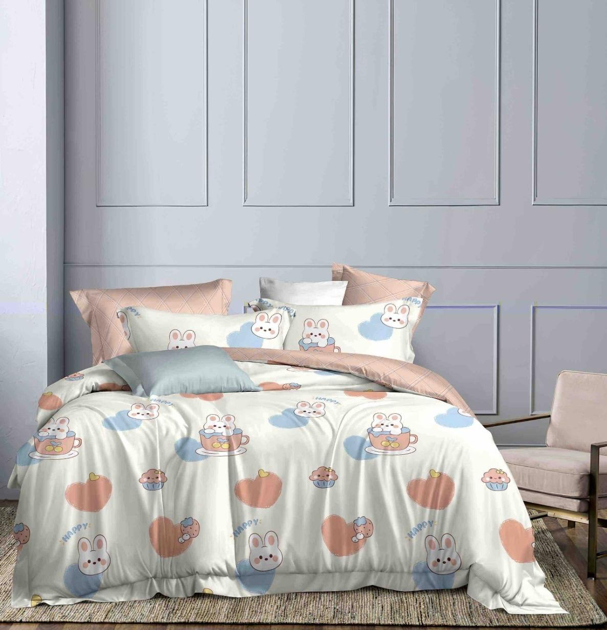 Lenjeria de pat are doua fete, pe o parte un imprimeu, pe cealalta alt imprimeu, astfe ca poti de fiecare data sa schimbi decorul camerei.