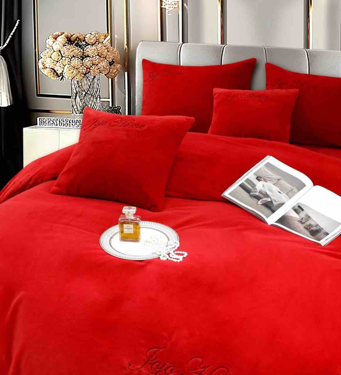 Lenjerie de pat, cu Broderie, Cocolino tip Blăniță Iepure, 2 Persoane, 6 Piese, cu ELASTIC - Rosu