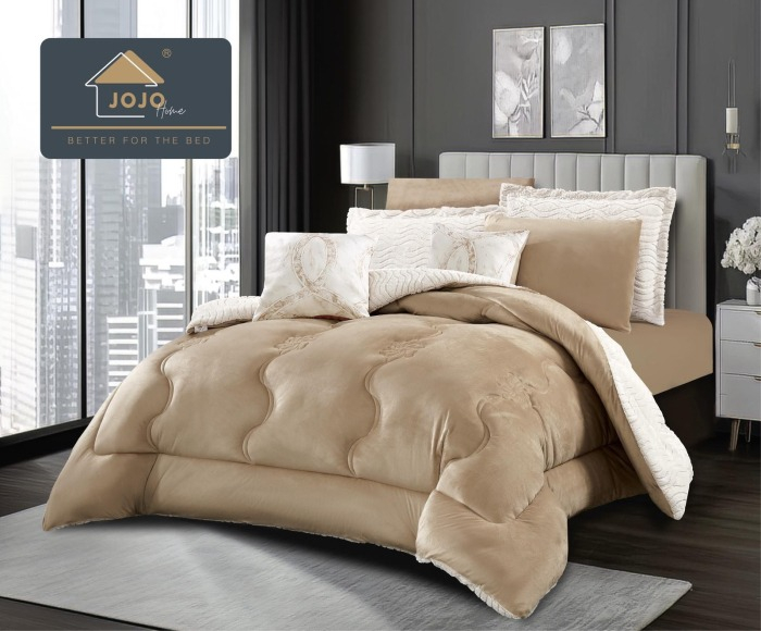 Set lenjerie de pat cu elastic ,cu pilota inclusa, blanita artificiala de iepure, 6 piese, Bej