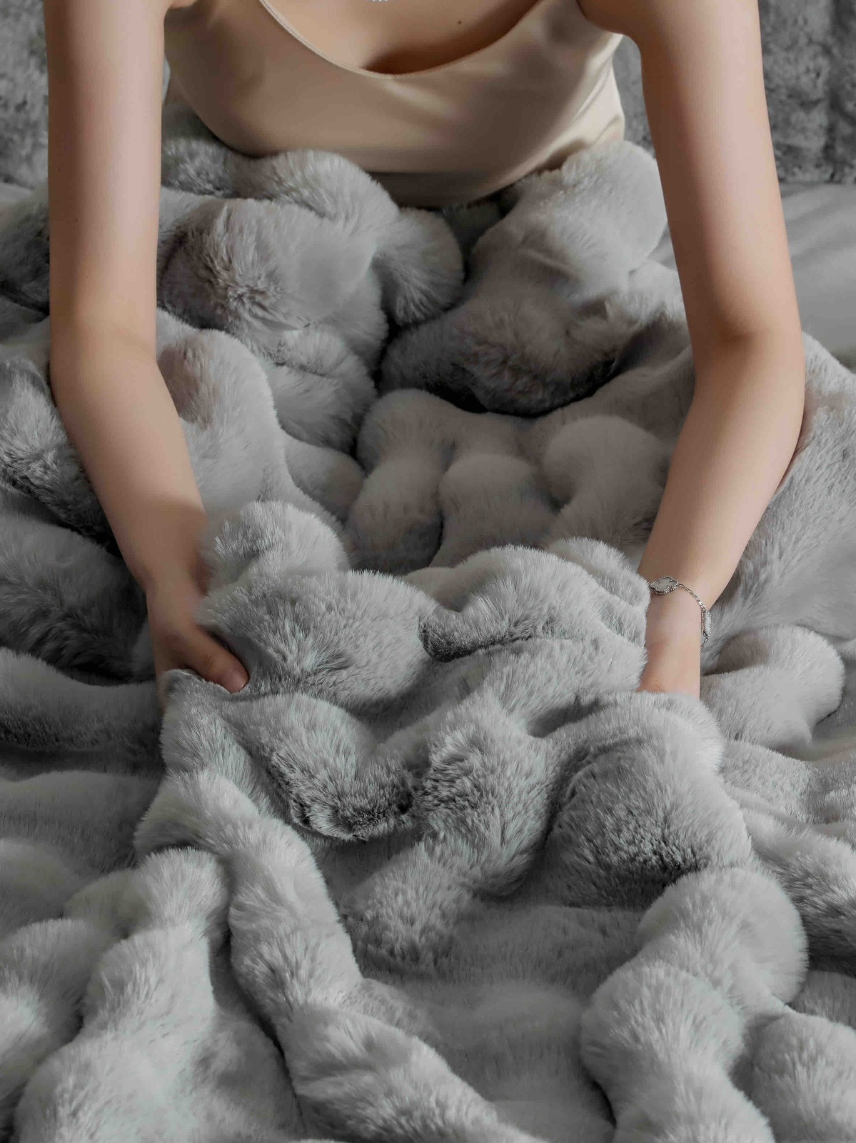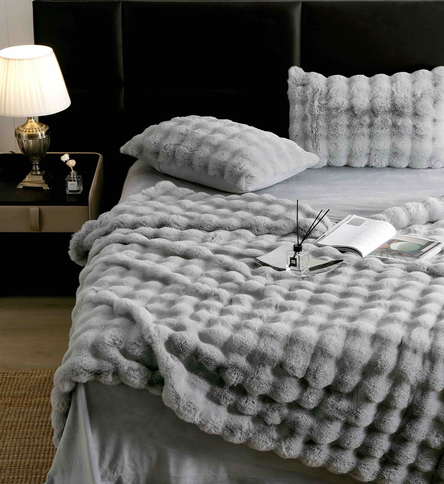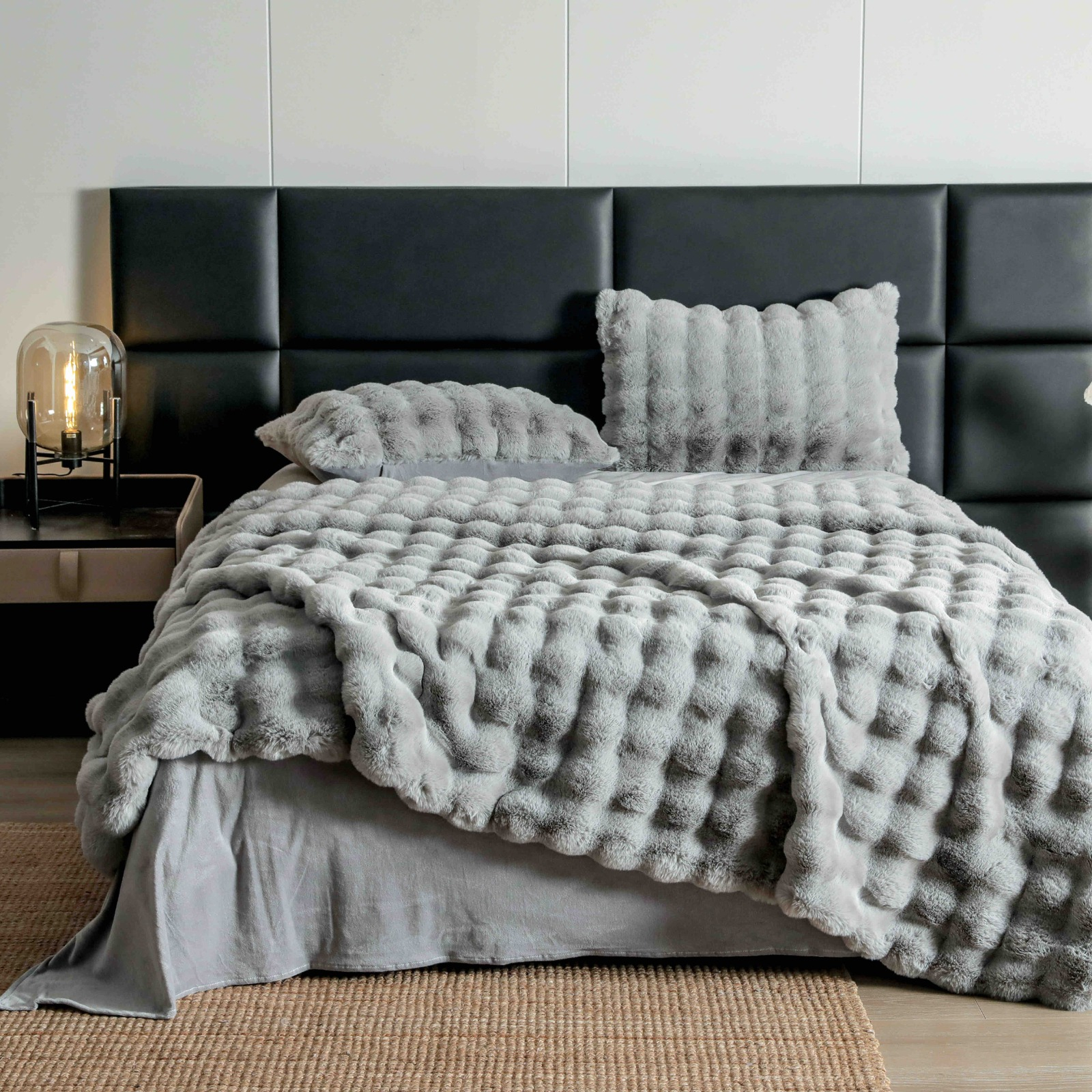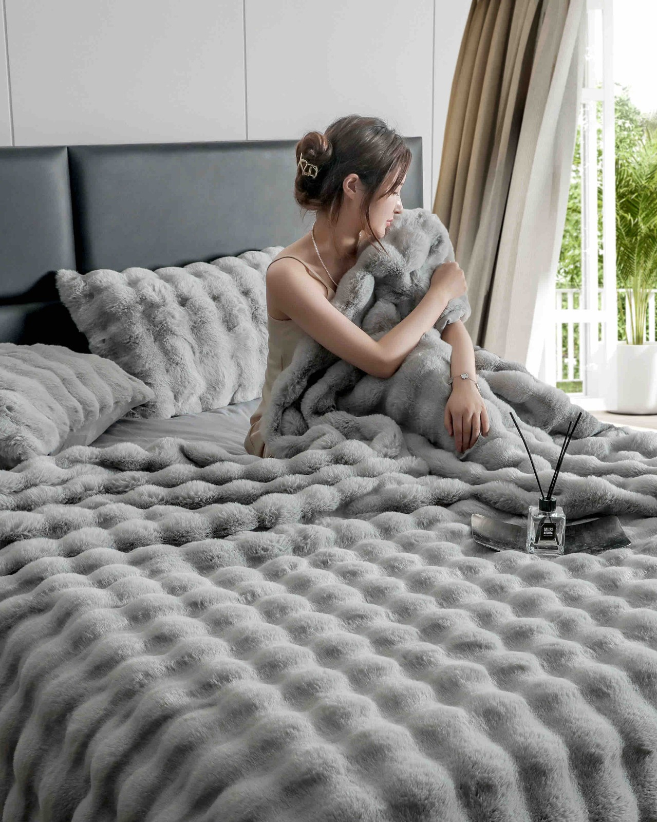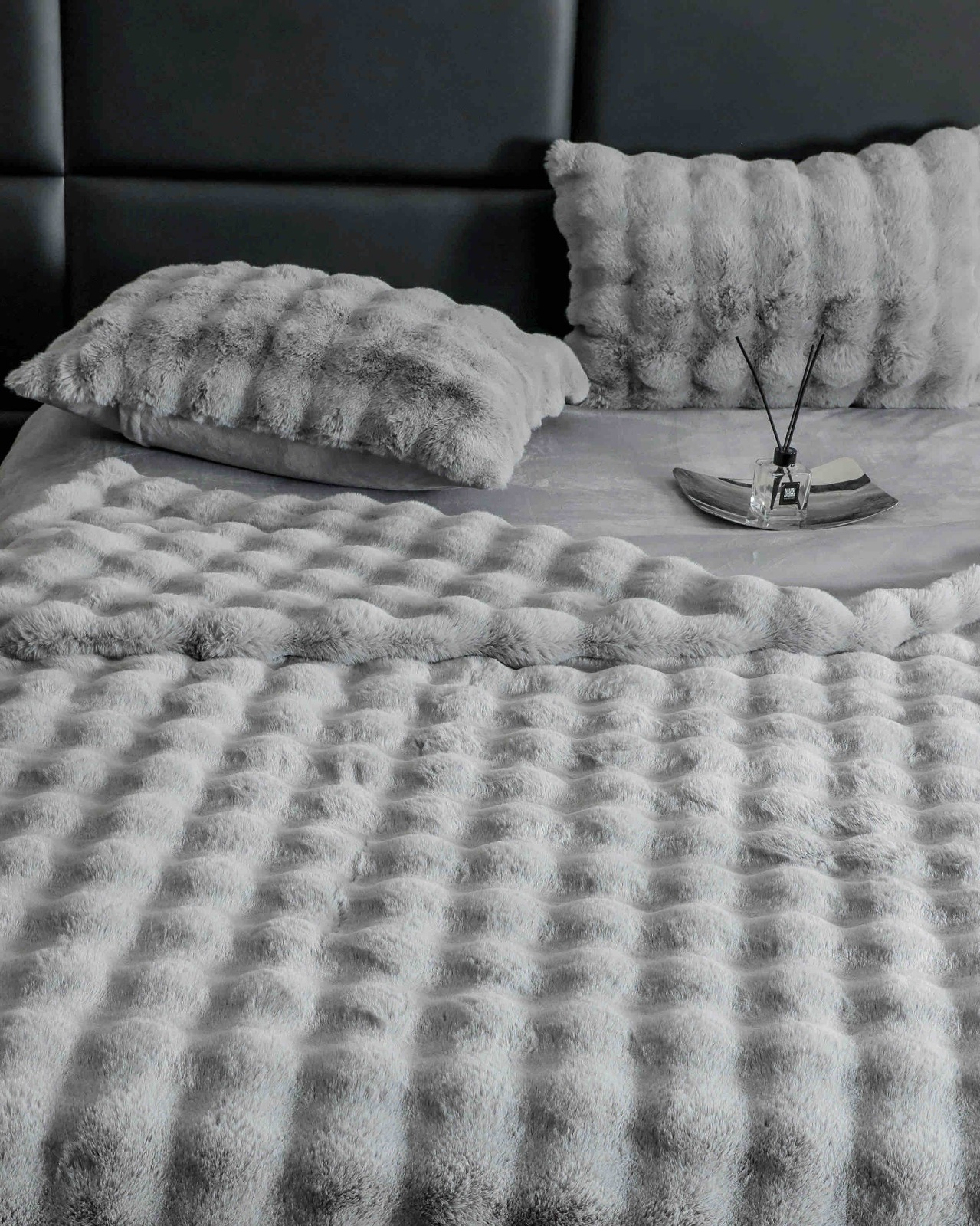 Lenjerie De Pat Pufoasa Rabbit Luxury Edition, 6 Piese, Gri Deschis