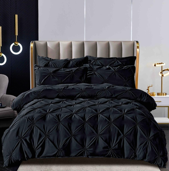Lenjerie Pat Dublu cu Pliuri – 6 Piese, Bumbac Finet, Cearceaf Elastic