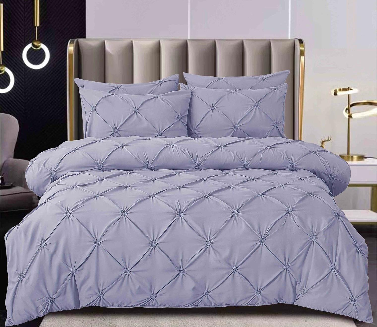 ✔️ Design modern cu pliuri elegante – realizate prin broderie fină pe cearșaful de pilotă și fețele de pernă.