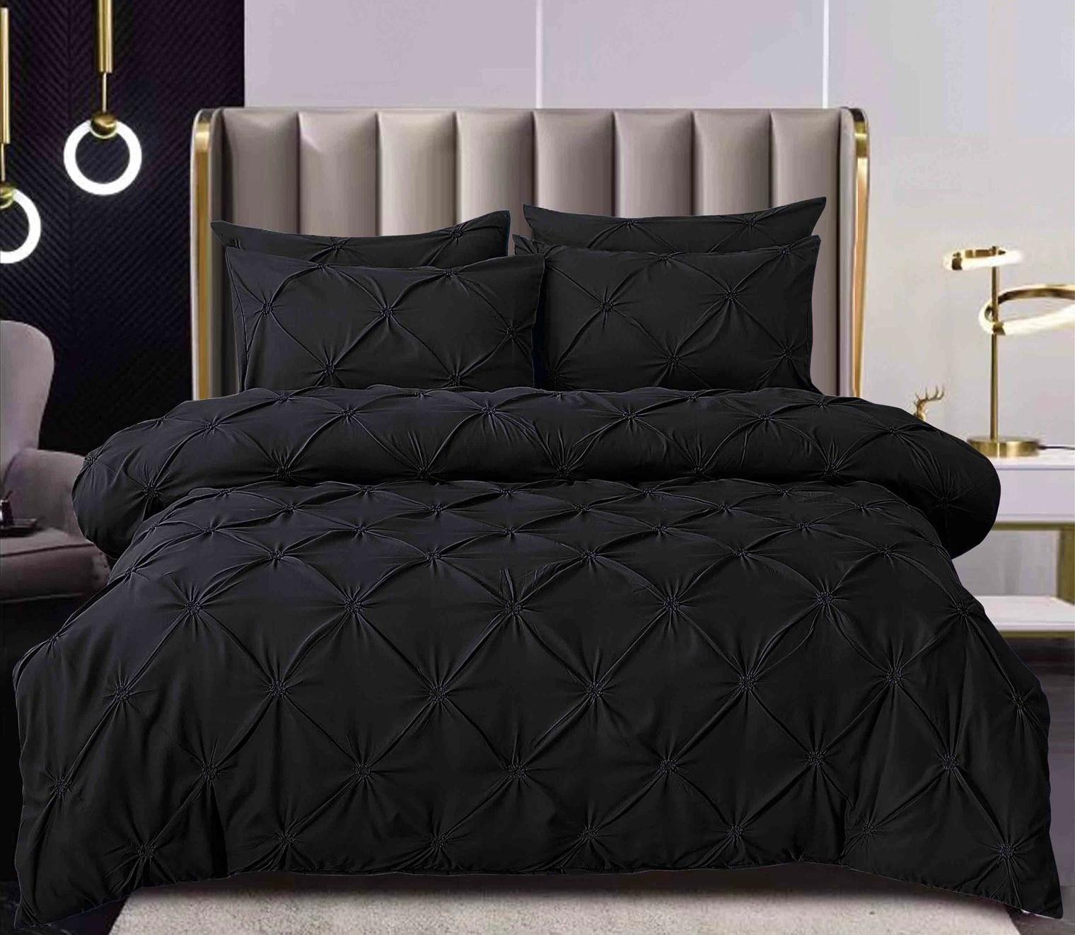 ✔️ Design modern cu pliuri elegante – realizate prin broderie fină pe cearșaful de pilotă și fețele de pernă.