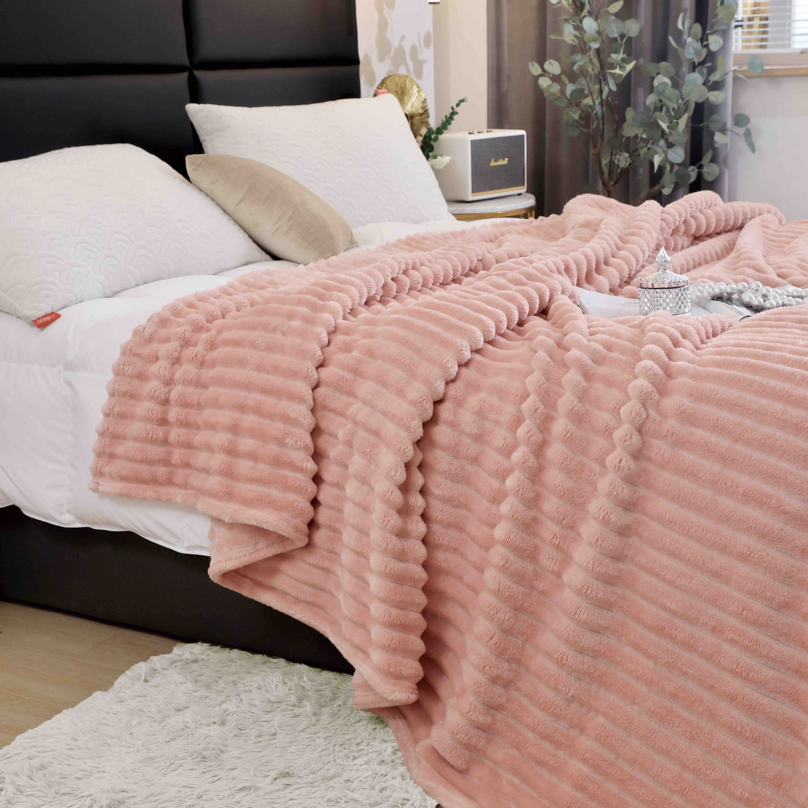Pătură tip Cocolino cu model raiat, realizată dintr-un material moale, pufos și catifelat, plăcut la atingere. Oferă confort termic și o senzație de relaxare, fiind ideală atât pentru utilizare zilnică, cât și ca element decorativ în dormitor.