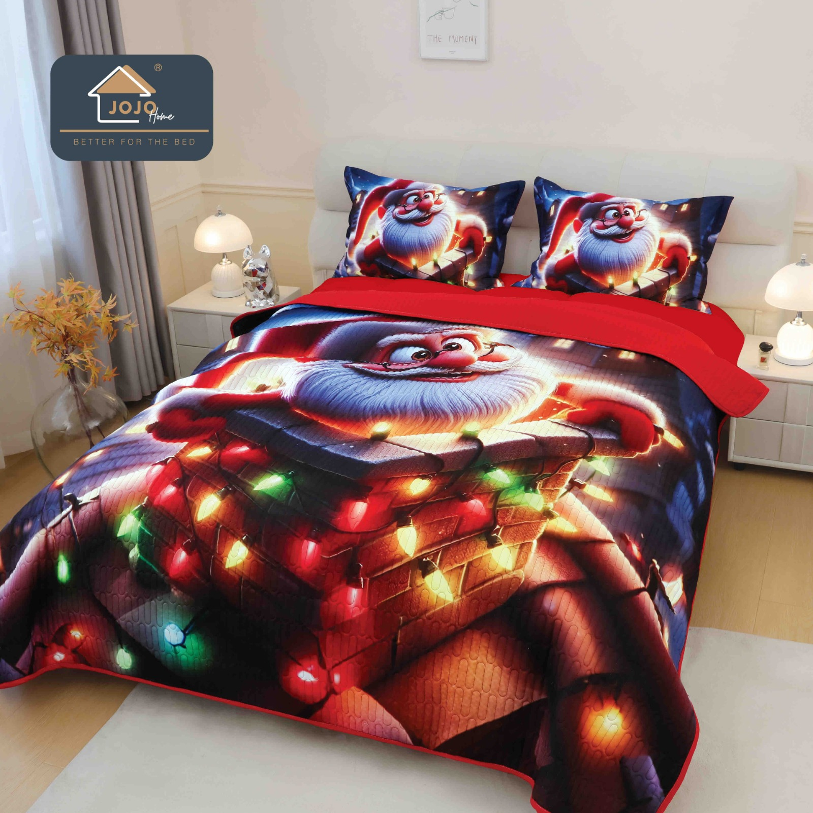 Adaugă magie sărbătorilor cu acest set de cuvertură + 2 fețe de pernă, imprimat digital cu un design identic cu poza de prezentare. Ilustrația vibrantă cu Moș Crăciun, reni și peisaje de iarnă transformă dormitorul într-un colț cozy și plin de bucurie. Perfect pentru decorul sezonului sau pentru un cadou memorabil!