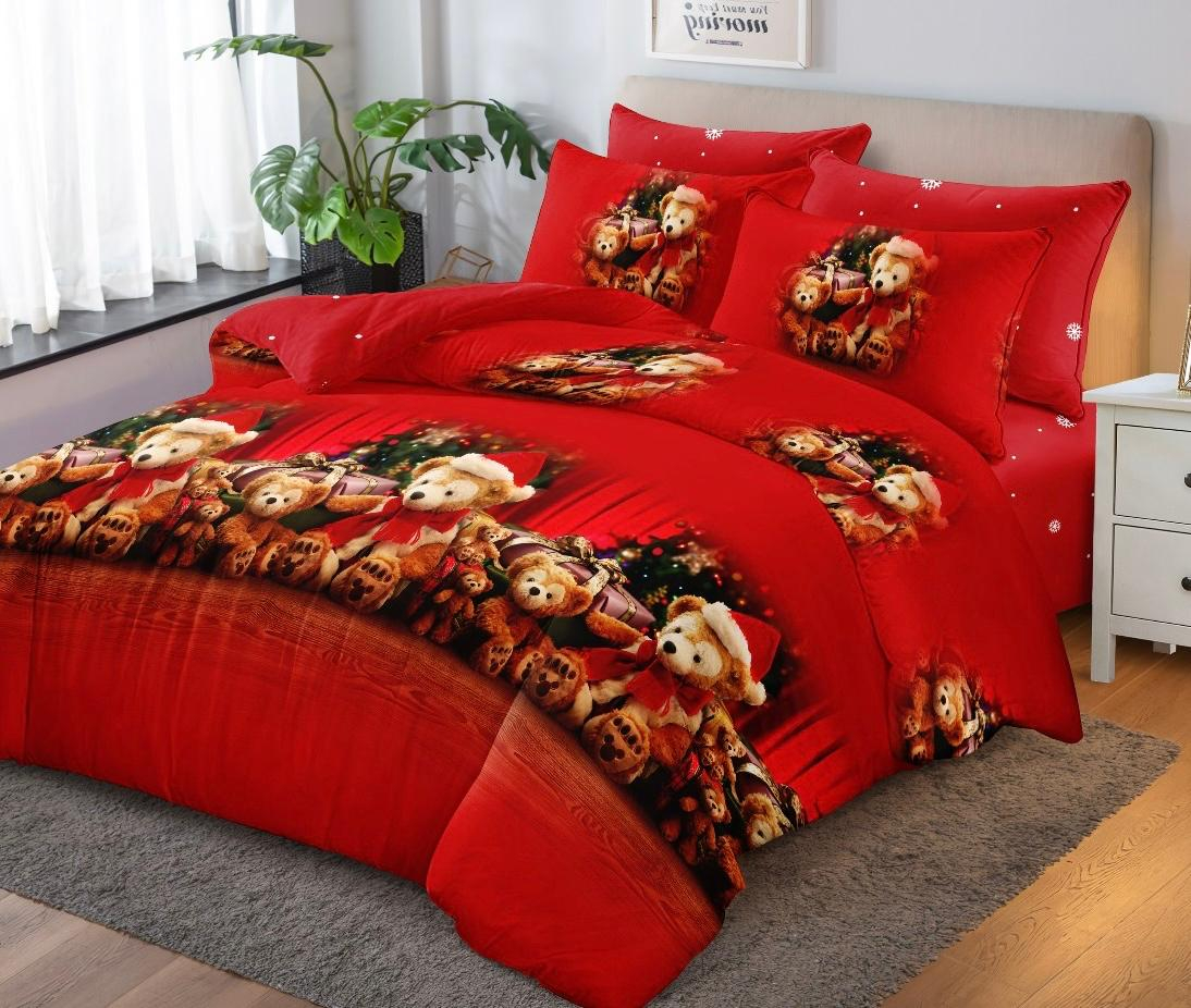 Lenjerie Din Bumbac Tip Finet 6 Piese Pentru Pat Dublu - Colectia Craciun